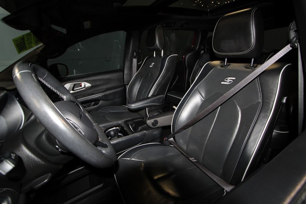 Every test drive at D-Patrick Ford in Evansville earns $10 to a local charity. Schedule your test drive today! 10.1 Touchscreen Display, 115V Auxiliary Power Outlet, 13 Speakers, 19 harman/kardon Speakers w/Subwoofer, 220 Amp Alternator, 3-Channel Video Remote Control, 3-Channel Wireless Headphones (RF), 3.73 Axle Ratio, 360 Surround View Camera System, 3rd row seats: split-bench, 4-Wheel Disc Brakes, 760 Watt Amplifier, ABS brakes, Air Conditioning, Alloy wheels, AM/FM radio: SiriusXM 360L, Anodized Ink Badging, Apple CarPlay, Apple CarPlay/Android Auto, Audio memory, Auto Adjust In Reverse Exterior Mirrors, Auto-dimming door mirrors, Auto-Dimming Exterior Driver Mirror, Auto-dimming Rear-View mirror, Automatic temperature control, AWD Suspension, Black Day Light Opening Moldings, Black Seats, Black Stow N Place Roof Rack, Blu-Ray/DVD Player/USB Port, Body Color Door Handles, Body Color Exterior Mirrors, Bodyside moldings, Brake assist, Bumpers: body-color, Chrome/Body Color Exterior Mirrors, Compass, Delay-off headlights, Disassociated Touchscreen Display, Driver door bin, Driver vanity mirror, Driver's Seat Mounted Armrest, Dual front impact airbags, Dual front side impact airbags, Electronic Stability Control, Emergency communication system: SiriusXM Guardian, Exterior Mirrors Courtesy Lamps, Exterior Mirrors w/Heating Element, Exterior Mirrors w/Memory, Exterior Mirros w/Supplemental Signals, Famcam Interior Camera, Four wheel independent suspension, Front anti-roll bar, Front Bucket Seats, Front dual zone A/C, Front fog lights, Front reading lights, Fully automatic headlights, Garage door transmitter: HomeLink, Google Android Auto, GPS Antenna Input, GPS Navigation, HD Radio, Heated door mirrors, Heated front seats, Heated rear seats, Heated steering wheel, High Definition Multimedia Interface, Illuminated entry, Instrument Panel Satin Silver Bezel, Integrated Center Stack Radio, Integrated Voice Command w/Bluetooth, KeySense, Knee airbag, Leather steering wheel, Low tire pressure warning, Memory seat, Nappa Leather Bucket Seats w/S Logo, Navigation System, Occupant sensing airbag, Outside temperature display, Overhead airbag, Overhead console, Panic alarm, Parallel & Perp Park Assist w/Stop, ParkSense Front/Rear Park Assist w/Stop, ParkView Rear Back-Up Camera, Passenger door bin, Passenger seat mounted armrest, Passenger vanity mirror, Piano Black Interior Accents, Power door mirrors, Power driver seat, Power Liftgate, Power moonroof, Power passenger seat, Power steering, Power windows, Premium & Safety Sphere Group, Premium Fascia Upper/Lower Grille w/Black Surround, Premium Leather Trim Bucket Seats, Premium Rear Fascia Black, Quick Order Package 27P, Radio data system, Radio: Uconnect 5 Nav w/10.1 Display, Rain sensing wipers, Rear air cond